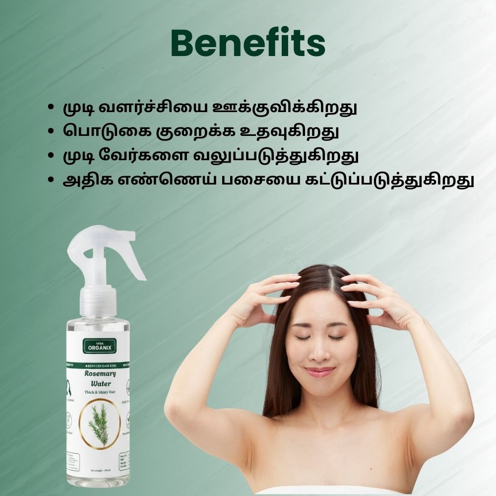 Choose Veda Organix Rosemary Water for healthier, stronger, and naturally beautiful hair every day.