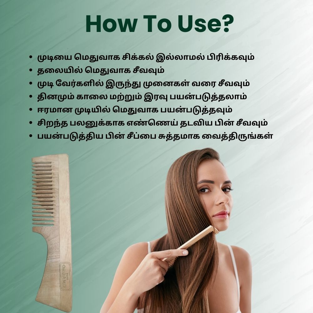 Recognized as a trusted choice among herbal haircare products in India, the Veda Organix Wooden Neem Comb is suitable for all hair types and can be safely used by men, women, and children.